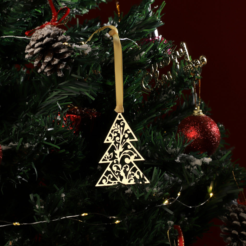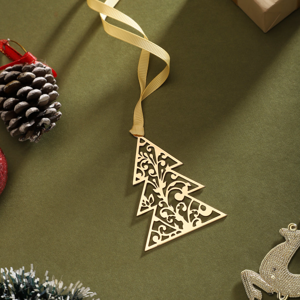 Bring festive elegance to your holiday decor with this beautifully crafted spiral tree ornament. Featuring intricate swirls that form a graceful tree shape, this ornament adds a touch of refined charm to any setting. Complete with a golden ribbon for easy hanging, it’s perfect for creating a warm, inviting holiday atmosphere.