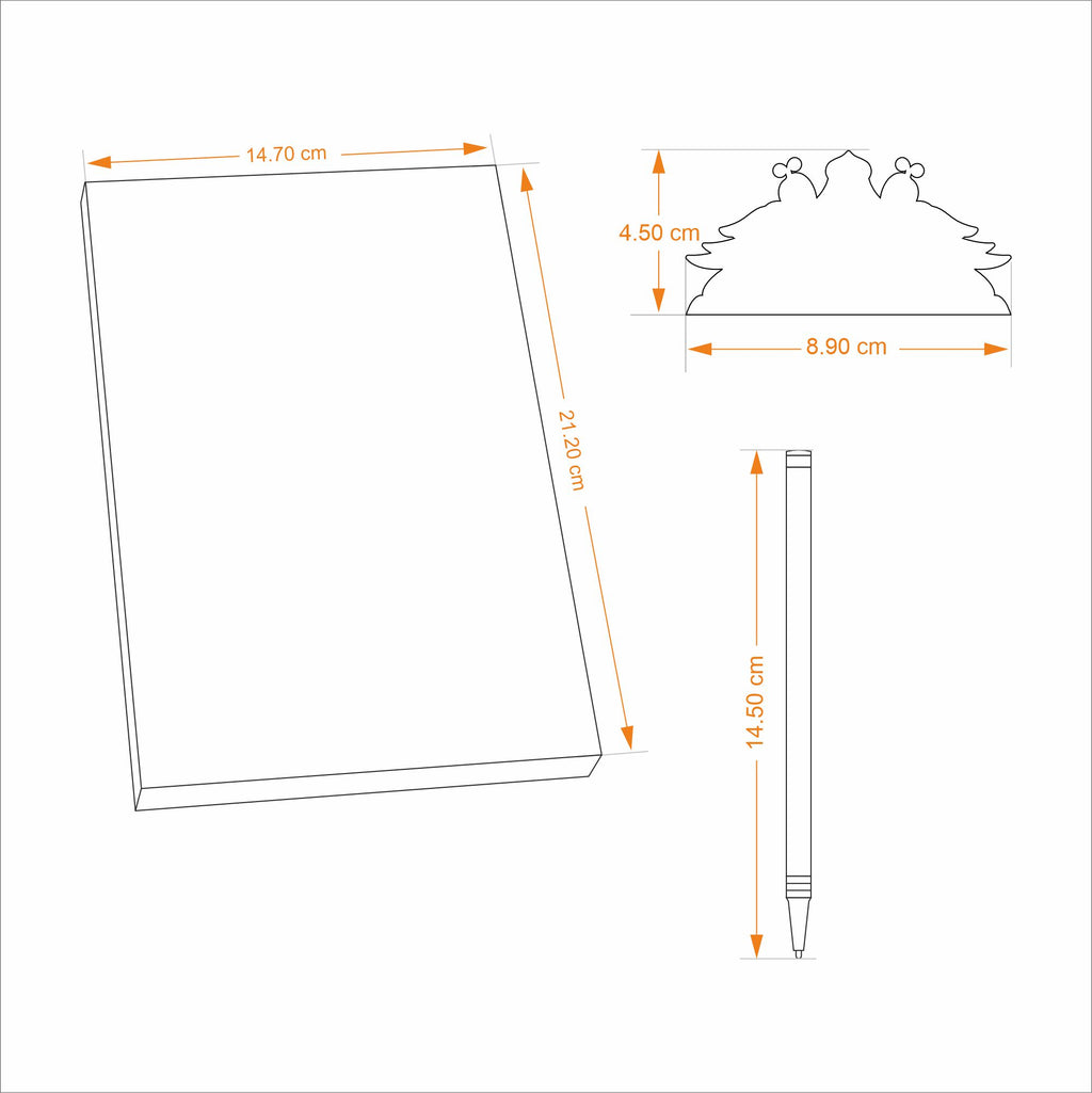- Journal size: 14.80 x 20.50 cms