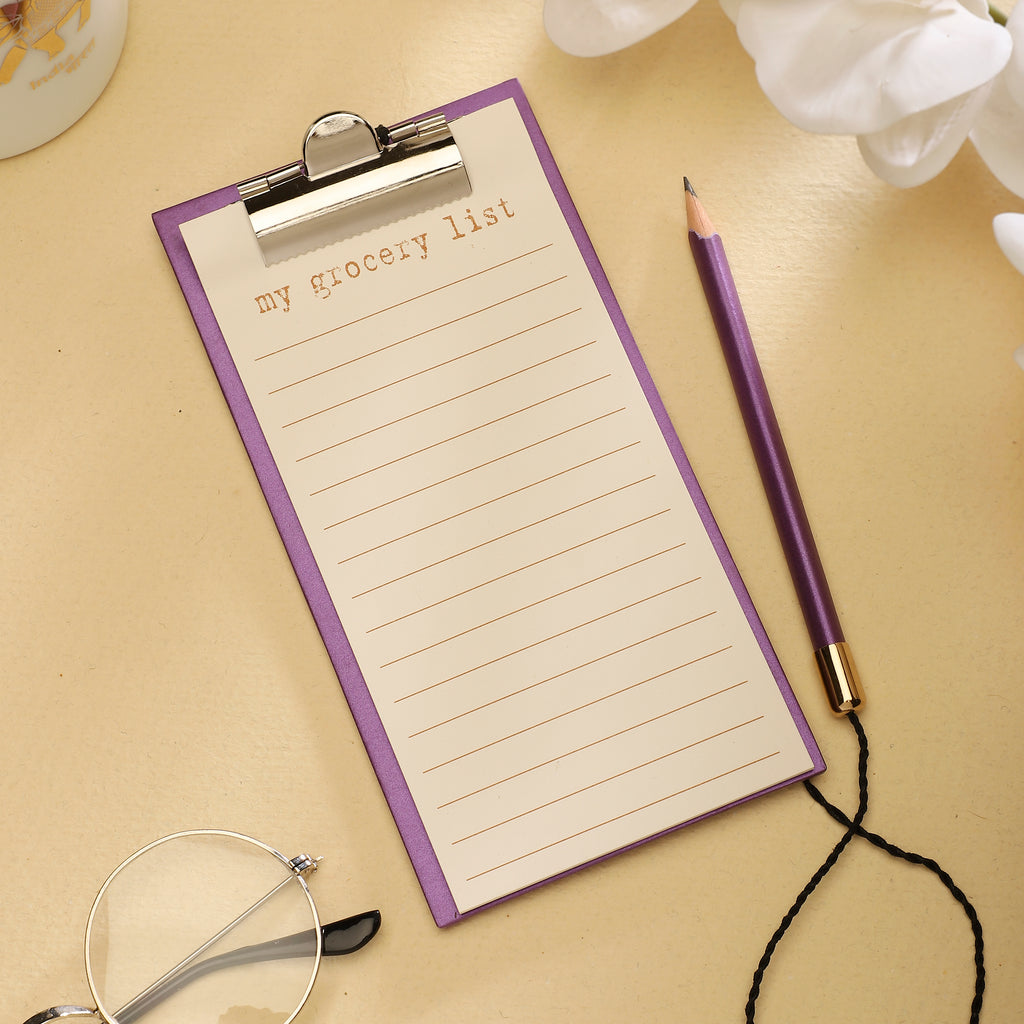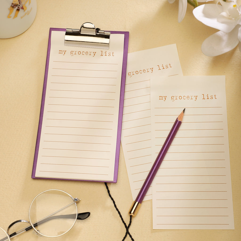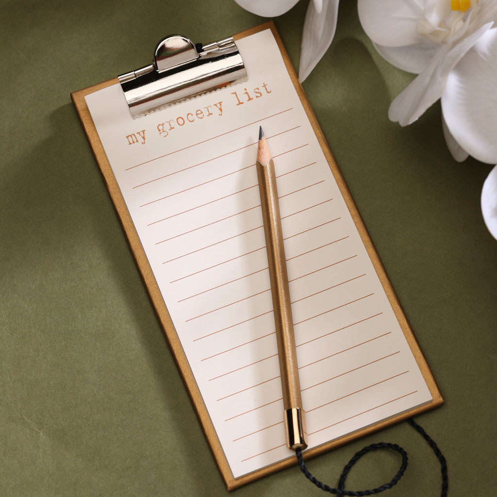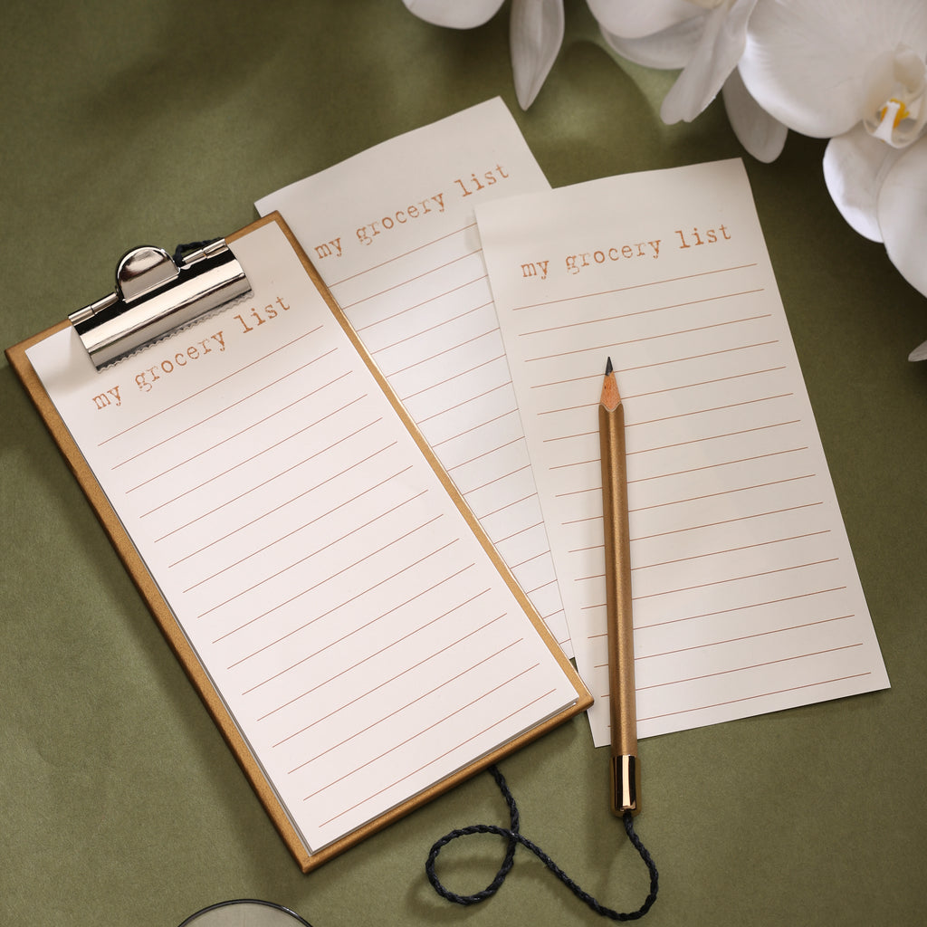 A pad with concealed magnets and loose sheets to jot down your daily errands. Sheets made with 100% recycled and wood-free paper. Each pad has an attached pencil with our signature brass plated top.